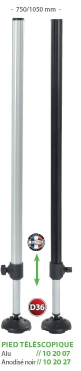Teleskopierbarer Alu-Bein. Länge 750mm bis 1050mm mit großen Schlammteller.