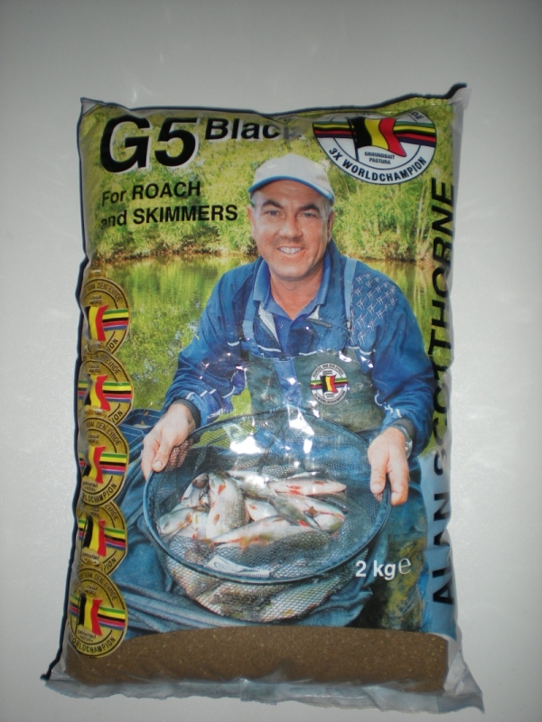 Van den Eynde ist ein Name mit Programm ? auch der 5-fache Weltmeister Alan Scotthorne war begeistert von den Futtermischungen von van den Eynde und hat nun in Zusammenarbeit seine eigene Kreation auf den Markt gebracht: G 5 (Black). Diese Mischung ist abgestimmt auf Rotaugen und Brassen und kann ganz natürlich noch mit zusätzlich Angelerde und Farbstoffen angereichert werden. Ein wahres Allroundfutter, das sowohl im Stillwasser als auch im Fließwasser seine Anwendung findet.