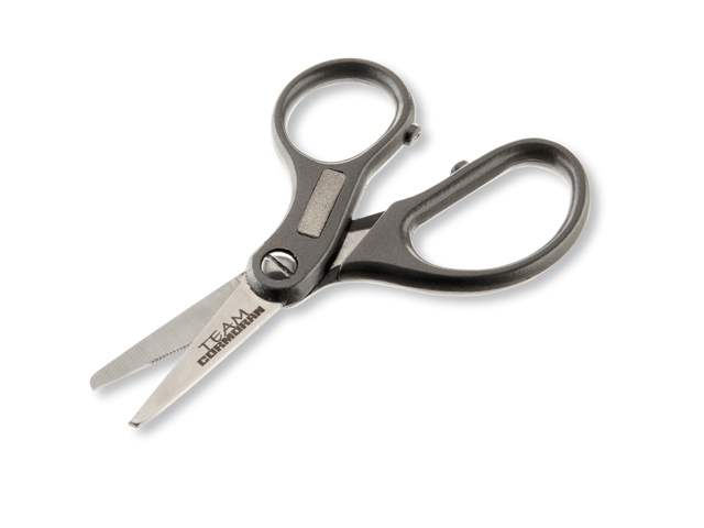 Spezialschere vor allem zum Schneiden geflochtener Schnüre. Die geriffelte Schnittkante verhindert, dass die Schnur beim Schneiden wegrutscht. Ergonomisch geformter Griff mit großen Fingerlöchern. Mit integriertem Diamant-Hakenschleifer. Mit Hilfe der Schraube kann die Scheidekraft der Schere immer konstant gehalten werden.