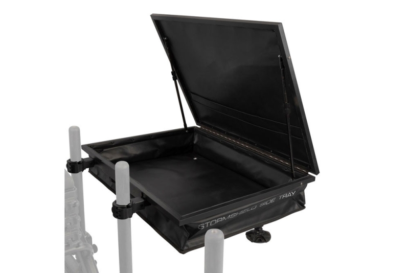 Stormshield Side Tray - Standard Das Standard Stormshield Side Tray ist die perfekte Wahl für Feederangler. Dieses beliebte Design verfügt über mehrere Hauptmerkmale, die es zu einem unverzichtbaren Produkt machen. Das Stormshield verfügt über unsere beliebten OffBox-Spannknöchel, die unglaublich stabil sind und so stabil, dass für dieses Seitenfach kein Stützbein erforderlich ist. Wenn Sie jedoch lieber ein Stützbein verwenden, wird das Seitenfach mit einem Achsschenkel geliefert, um ein Bein aufzunehmen (nicht mitgeliefert). Die Spannknöchel sind vollständig in der Breite verstellbar und passen sich jeder Box auf dem Markt an. Die Knöchel werden mit Beineinsätzen geliefert, die für verschiedene Beingrößen geeignet sind (23 mm, 25 mm, 30 mm oder 36 mm ohne Einsatz). Die interne Aufbewahrung ist hervorragend und bietet viel Platz für Köderboxen oder EVA-Schalen. Der Hubdeckel verfügt auch über Innentaschen für die sichere Unterbringung kleinerer Endgeräte. Der Stormshield-Deckel verfügt über neue Twist Grip-Arme, mit denen der Deckel überall dort abgewinkelt werden kann, wo Sie ihn benötigen, um Ihren Köder zu schützen.