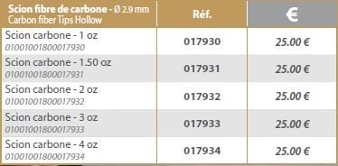 Rive Ersatzspitzen Hohlkarbon Ø 2.9 mm für Long Cast Delta