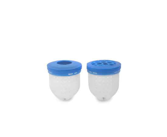 Jede Packung enthält zwei Pots, die jeweils mit zwei verschiedenen Deckeln geliefert werden. Ein Sprinkler- und ein konischer Deckel, die es ermöglichen, diese Pots mit einer Vielzahl von Ködern, einschließlich Paste, einzusetzen.
