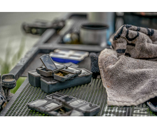 Diese Zubehör- und Aufbewahrungsboxen sind in drei Größen erhältlich, die sich alle perfekt für die Aufbewahrung von Kleinteilen wie Wirbeln, Perlen und Stoppern eignen. Die größte Box eignet sich auch für die Aufbewahrung größerer Gegenstände wie Ködernadeln.