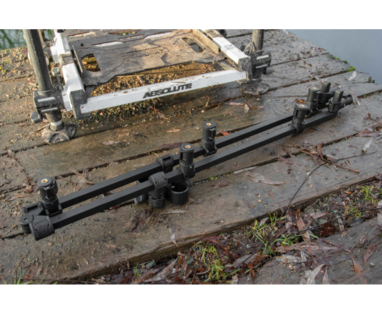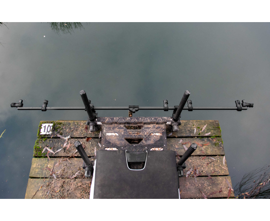 Der Tool Bar XL ist für bis zu 7 Setzkescher ausgelegt und ist ein unverzichtbares Gerät für alle, die an Angelplätzen mit viel Fangfrequenz auf mehrere Setzkescher setzen. Für Tage, an denen 4 oder weniger Setzkescher benötigt werden, kann der Tool Bar verkürzt werden.