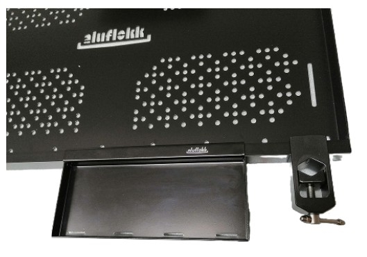 Innenmaße der Ablage: 30 x 12 cm Diese praktische Ablage wird einfach an der Kante der Beistelltische befestigt und eignet sich ideal zur Aufbewahrung von kleinem Zubehör wie Abflussreinigern oder Sonden.